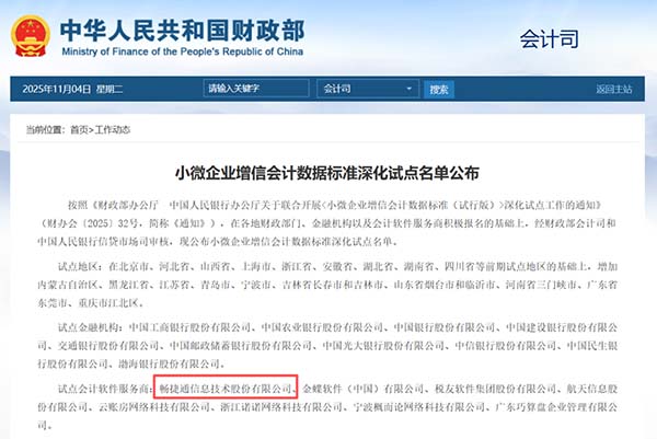 入選本次試點服務商,是對暢捷通長期深耕小微企業(yè)數(shù)智化轉型服務領域的肯定。作為連接廣大小微企業(yè)財稅數(shù)智化管理與金融機構信貸評價的關鍵一環(huán),暢捷通肩負著重要的責任。