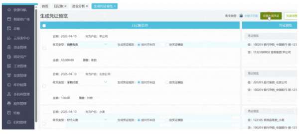 系統(tǒng)可基于實際業(yè)務(wù)內(nèi)容自動識別并生成記賬憑證,實現(xiàn)業(yè)務(wù)與財務(wù)數(shù)據(jù)的精準匹配。