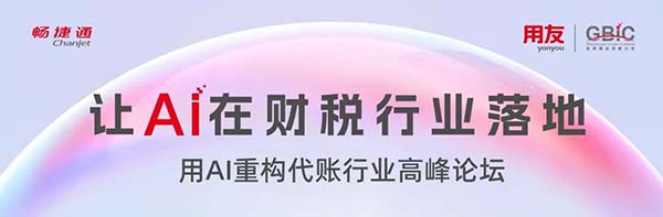 8月15日,深圳國際會展中心,在用友2025全球商業(yè)創(chuàng)新大會期間,暢捷通將舉辦“讓AI在財稅行業(yè)落地:用AI重構代賬行業(yè)高峰論壇”。本次論壇將匯聚財稅行業(yè)領袖、技術先鋒與轉型標桿,深度解碼AI如何穿透概念迷霧,在代賬核心業(yè)務流程中實現(xiàn)“真落地”,并驅動價值的根本性重構。