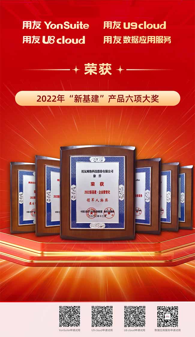 用友U9 cloud榮獲“2022新基建·中型及中大型制造業(yè)云ERP首選品牌”及“2022新基建·專精特新最佳解決方案獎(jiǎng)”